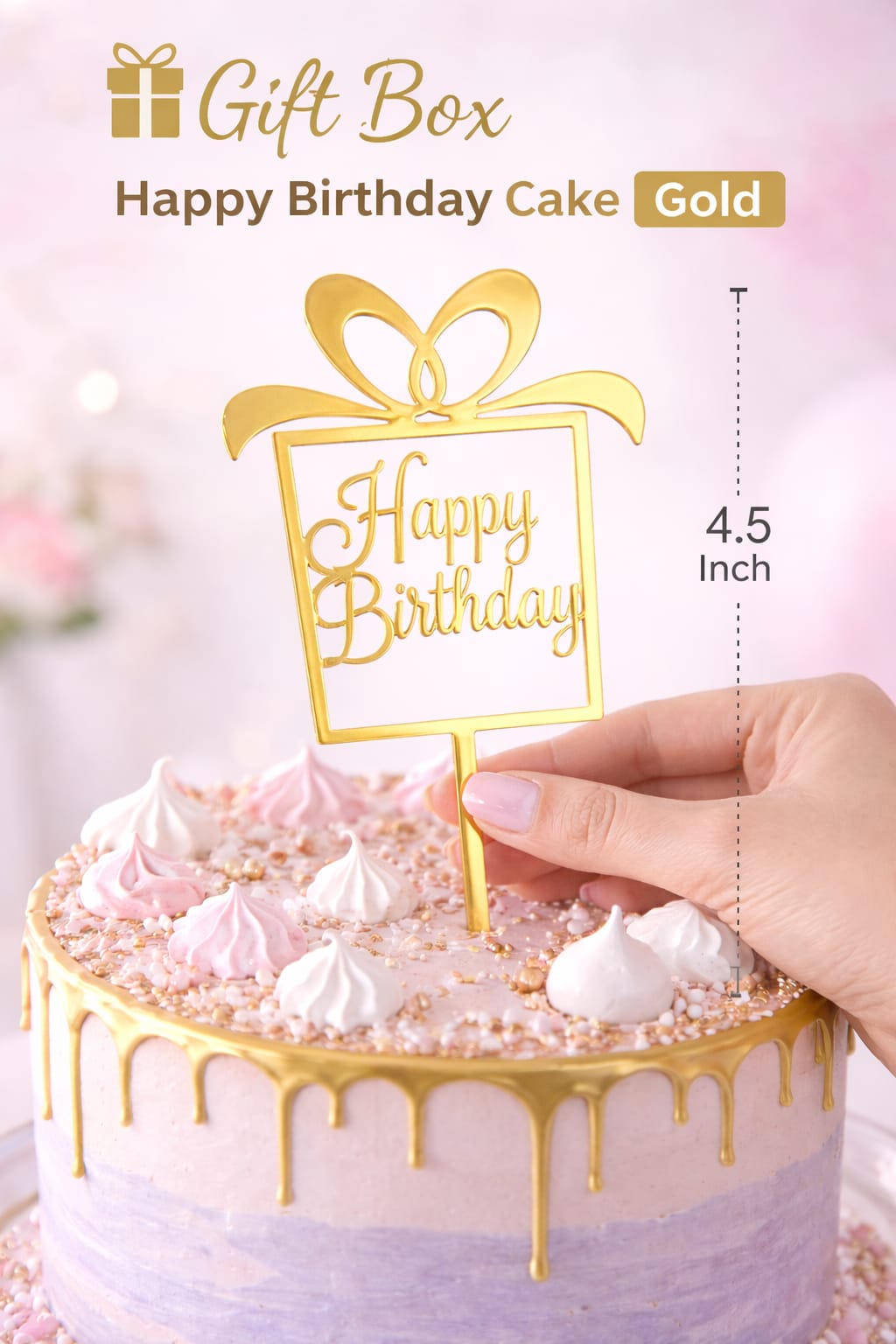 Make your celebration cake stand out with this stylish gold Happy Birthday cake topper. Designed with a beautiful cursive font and premium finish, this topper adds a classy touch to any birthday cake. Lightweight and easy to use, simply insert into the cake for an instant decoration. Suitable for home bakers, professionals, and party planners.