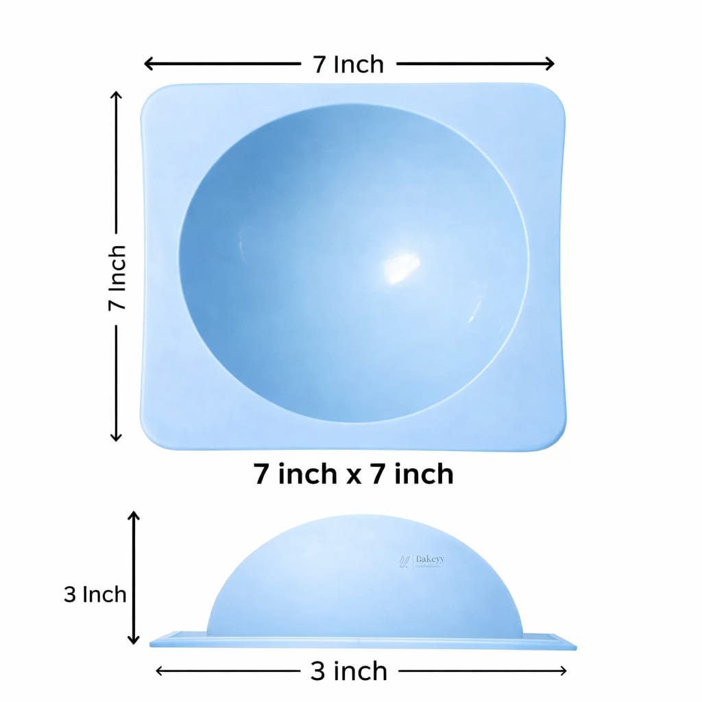 Food grade half sphere silicone mould 7x7x3 inch. Perfect for dome cakes, mousse, chocolate and desserts. Flexible, reusable and easy to demould.
